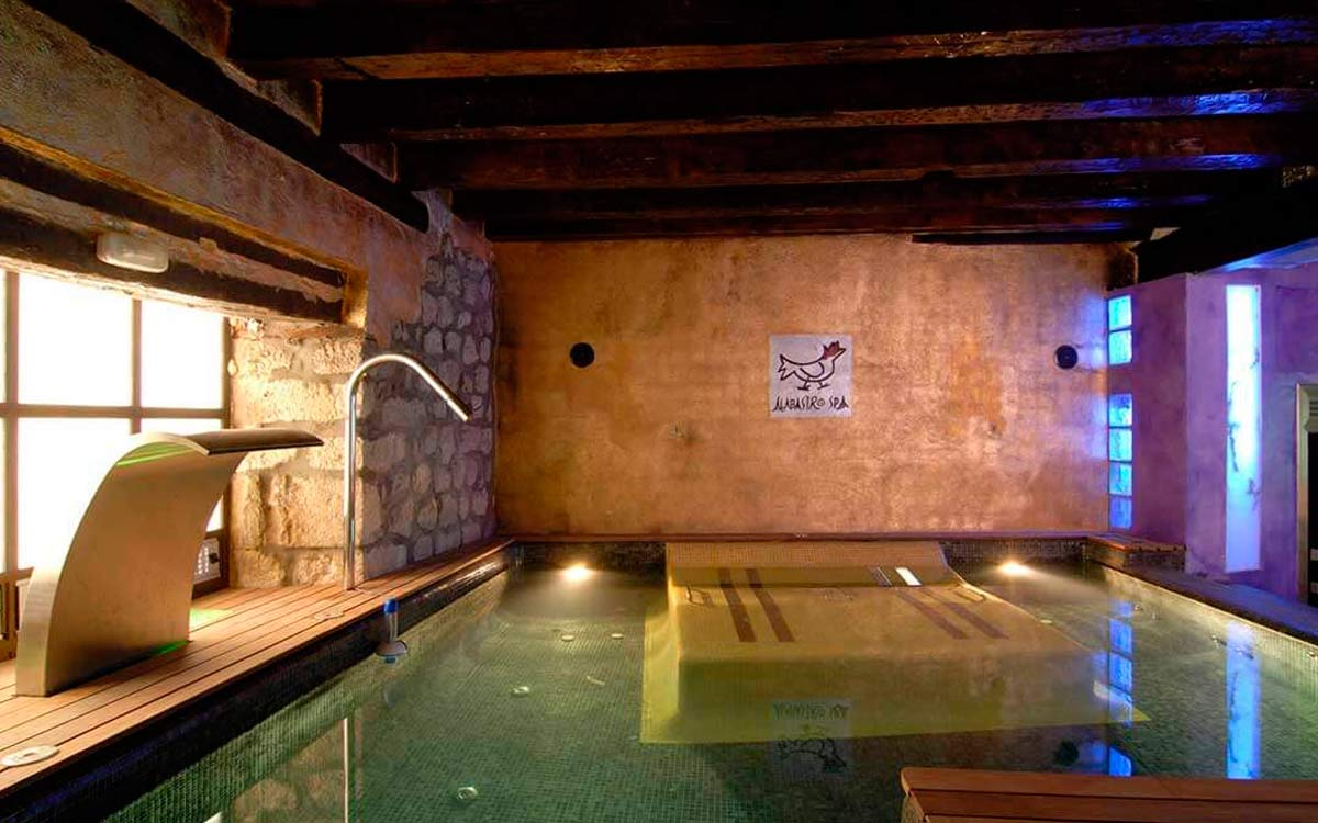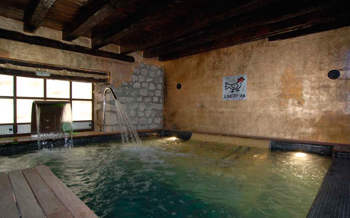 Disfruta de una piscina a 32ºC con cascada, cuello de cisne, camas de hidromasaje, chorro contra-corriente y jacuzzis interiores para una relajación total.